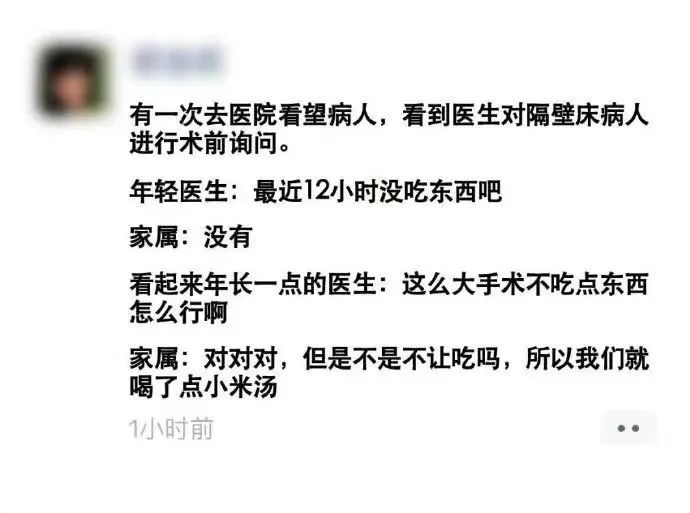 醫(yī)生詢問患者:“昨晚到現(xiàn)在吃東西了嗎?”